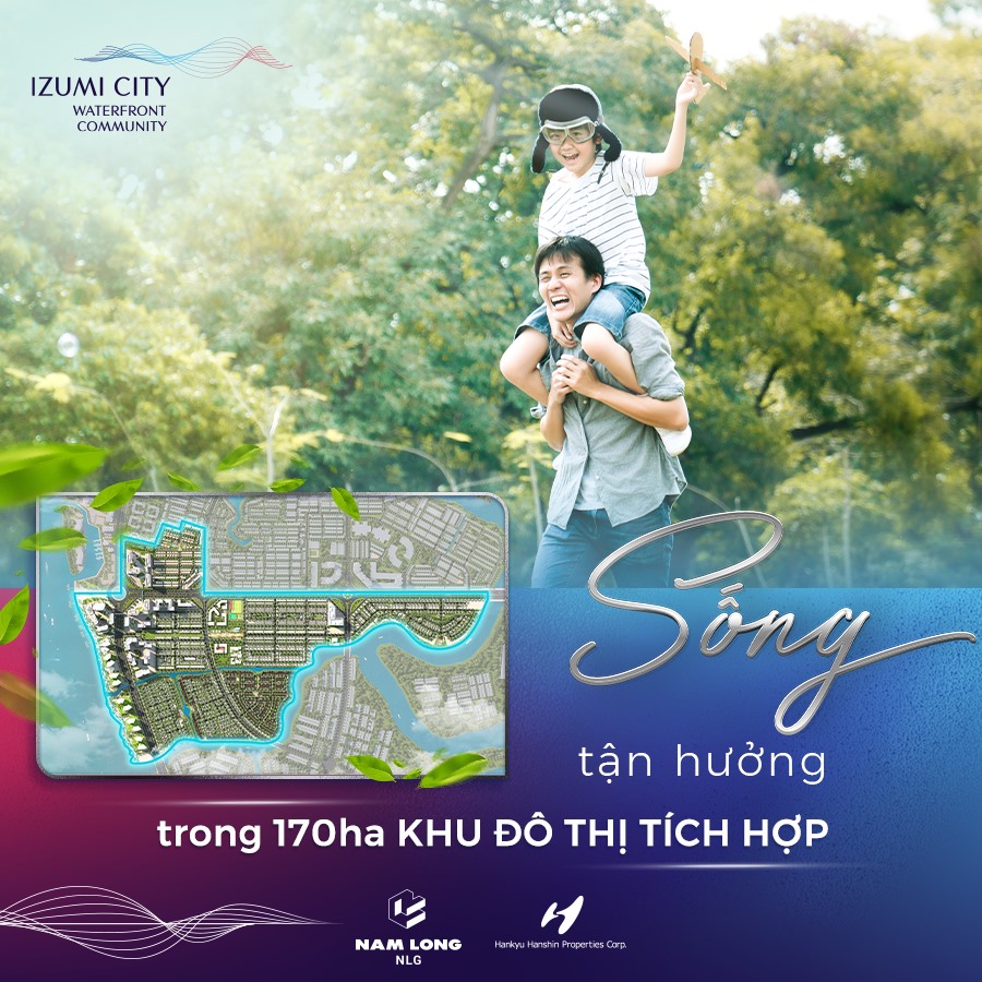 Mang hoài bão của Tập đoàn Nam Long cùng đối tác Hankyu Hanshin Properties Corp, Izumi City sẽ trở thành trung tâm của những giá trị đô thị hiện đại – không chỉ là nơi đáng sống, mà còn là nơi học tập, vui chơi, làm việc, giải trí. Tại đây, mỗi cư dân, mỗi gia đình của cộng đồng bên dòng sông Đồng Nai năng động sẽ luôn tìm thấy cho mình năng lượng của sự vui vẻ, viên mãn và tròn đầy…